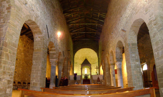 L’interno è composto da tre navate, separate da archi a tutto sesto. Le ultime tracce degli affreschi che una volta ricoprivano le pareti sono stati cancellati dai restauri compiuti negli anni ’30. Sul presbiterio, si trova il ciborio del duca Orso (datato 882), in calcare bianco.